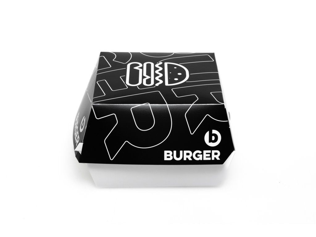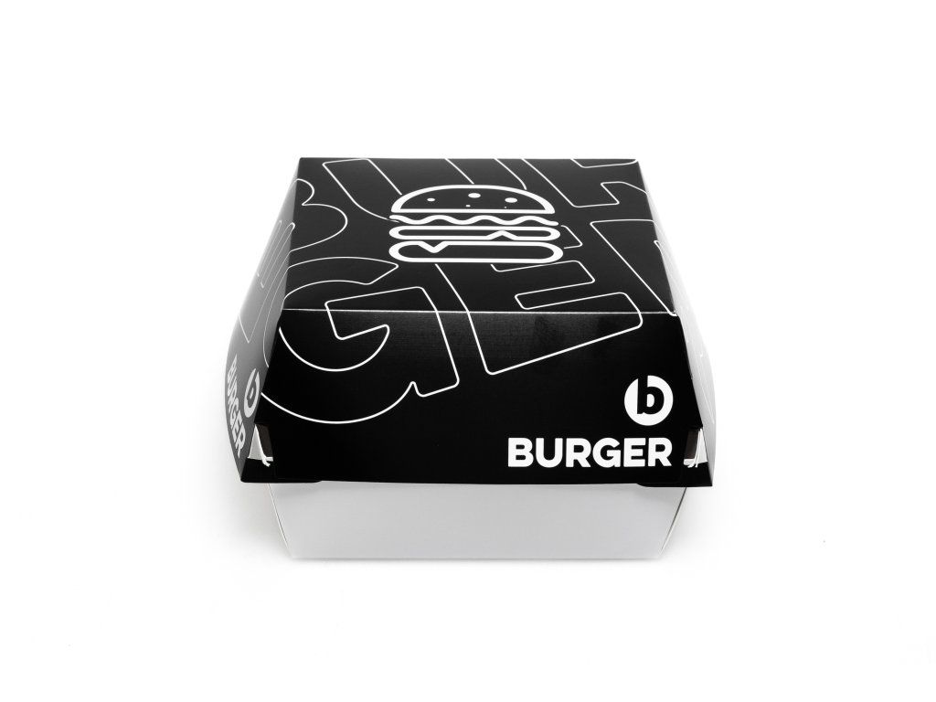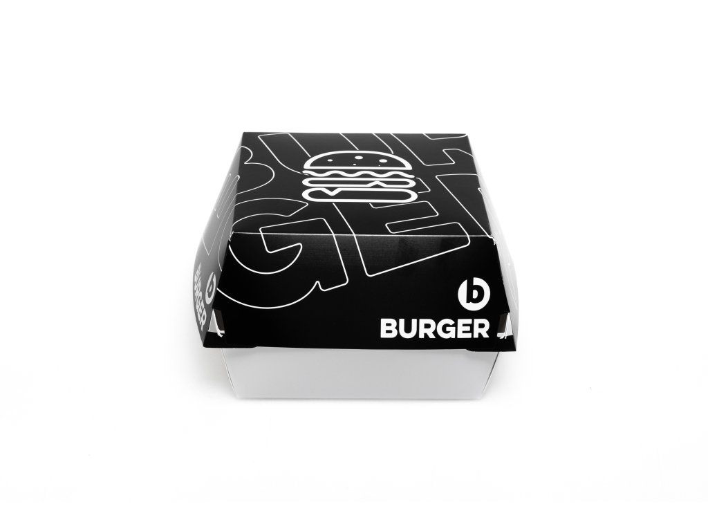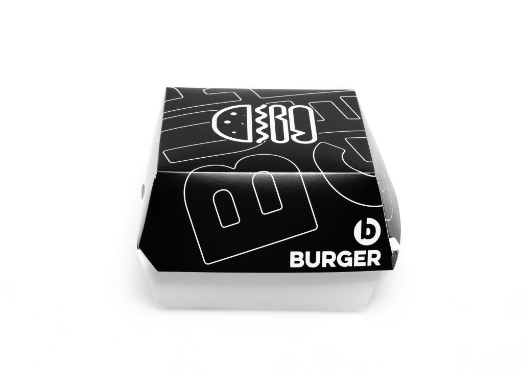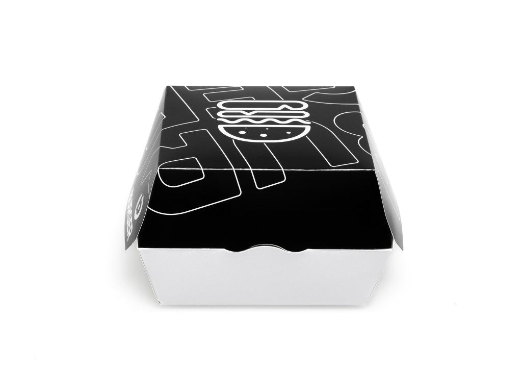 Rozmer obalu je ideálny pre menšie a klasické burgre. Elegantná čierna potlač dodáva baleniu moderný a profesionálny vzhľad, ktorý zvyšuje atraktivitu jedla pri výdaji aj doručení zákazníkovi. Obal je praktický, ľahko skladateľný a vhodný na osobný odber, rozvoz aj food trucky.
