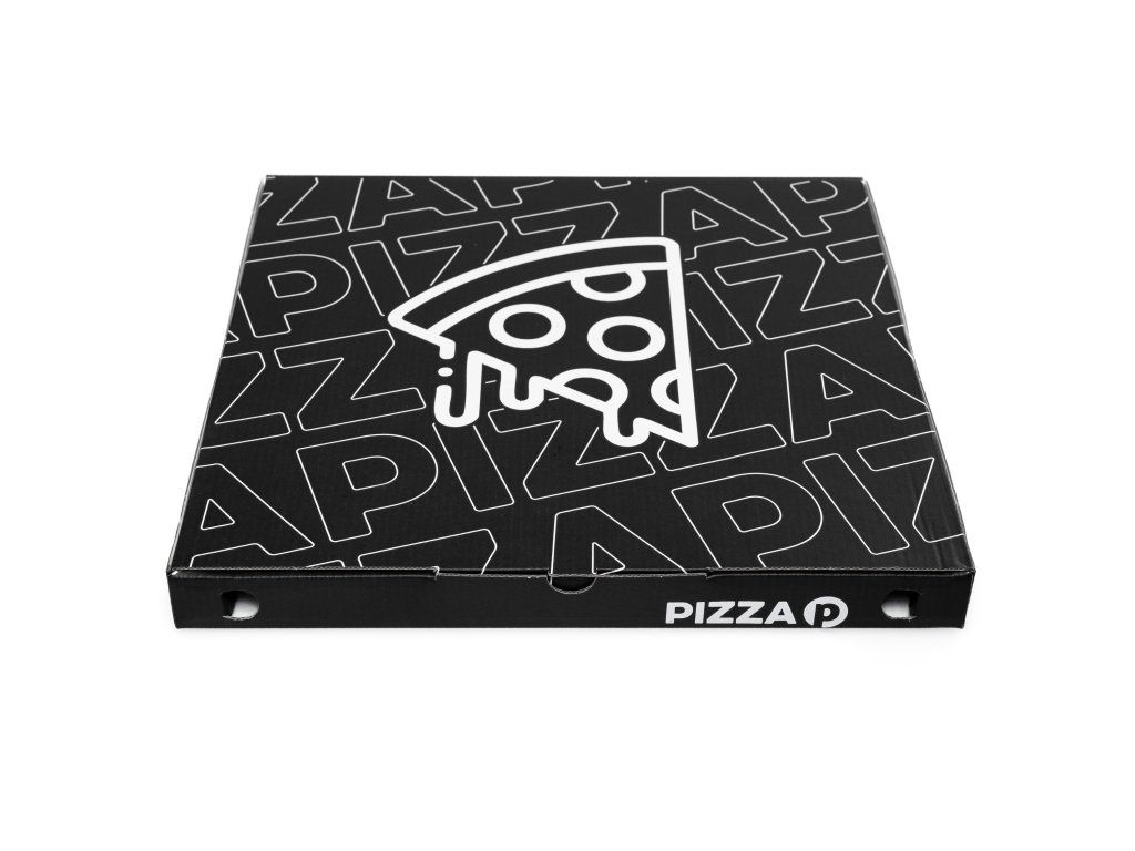 Pizza krabica malá 33 × 33 × 3,1 cm Print Black je ideálna pre pizzerie, bistrá, food trucky a donáškové služby. Pevný materiál zabezpečuje, že pizza zostane chrumkavá a nepoškodená počas prepravy, čím zaručuje spokojnosť zákazníkov.