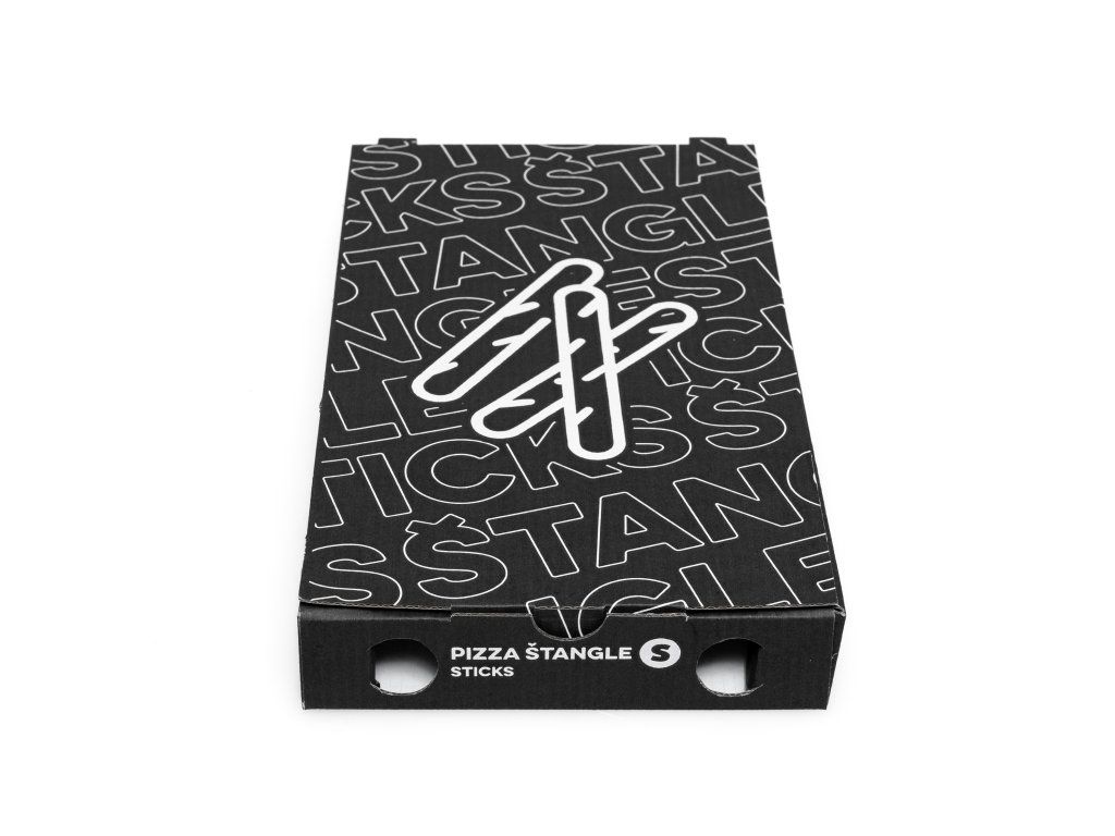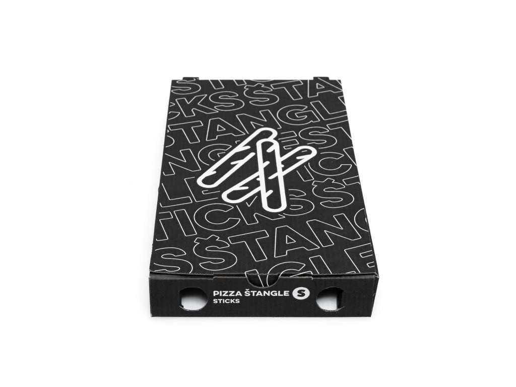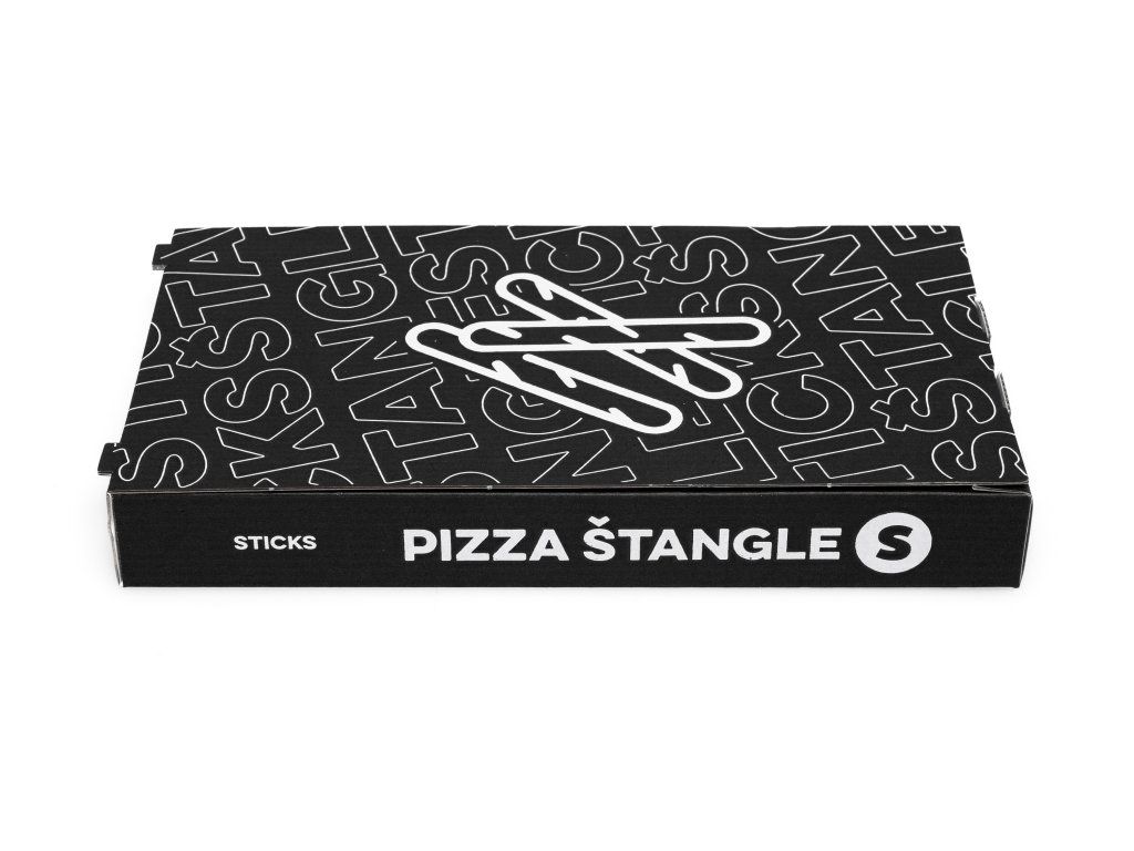 Obal na pizza štangle 16,8 × 30,4 × 4 cm Print Black je ideálny pre pizzerie, bistrá, food trucky aj donáškové služby. Pevný kartón zabezpečuje, že pizza štangle zostanú chrumkavé a nepoškodené počas prepravy.